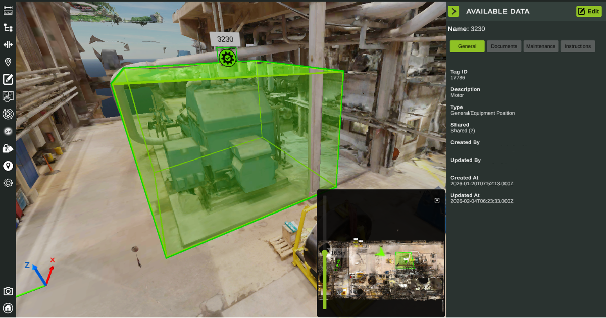 AI-assisted data linking and system integrations connect documents, work orders and live asset data directly to their physical location in the 3D environment.