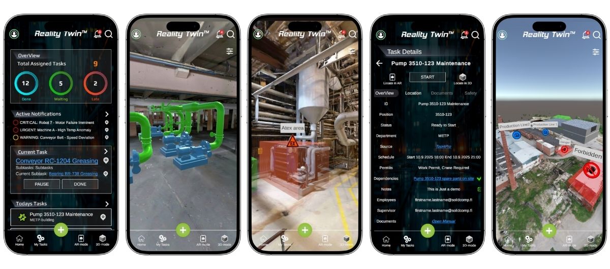 Reality Twin Field is not intended to replace maintenance management systems (CMMS) or document repositories. Its role is to serve as an easy-to-use interface to the factory’s data so that information becomes usable at the moment and the place where work is decided and carried out.